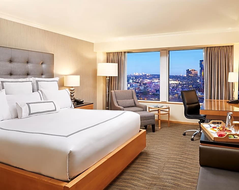 This spacious room offers a 42" LCD TV, iPod dock, fully stocked mini-bar, coffee maker, and a digital safe. A seating area and work desk are provided. The private bathroom includes Italian marble and free toiletries. A view of the city and Mount Baker is enjoyed.