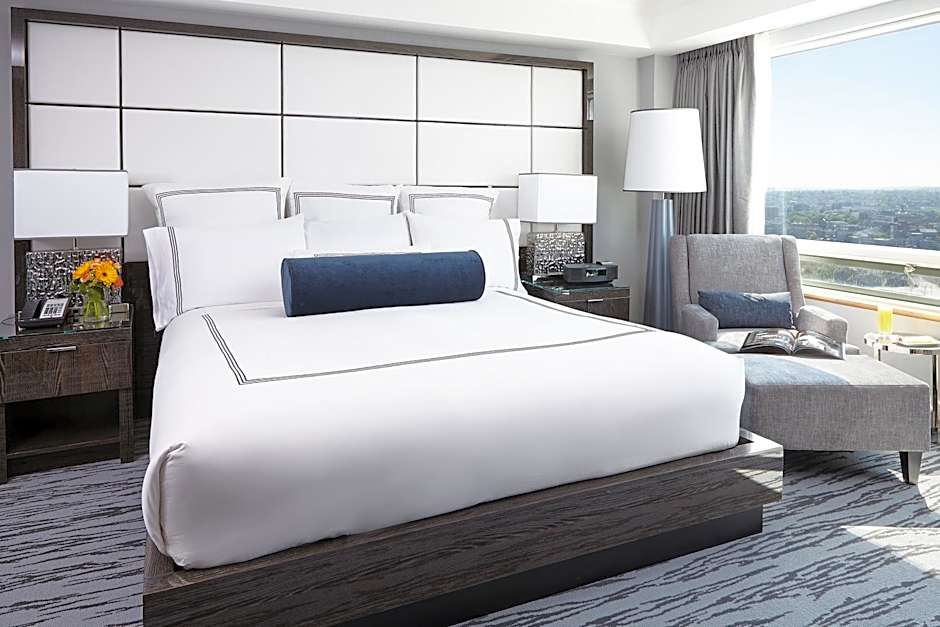 Also known as the Bayview Suite, this suite offers a separate bedroom and living room both with a 42" LCD TV. An iPod dock, fully stocked mini-bar, coffee maker, and a digital safe are included. The private bathroom includes Italian marble and free toiletries. A view of the city is enjoyed.